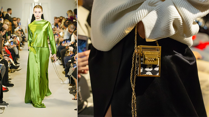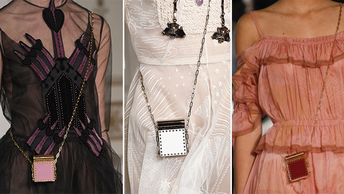 就比如源自美国的新晋品牌Brandon Maxwell,也在2019年春夏推出一款无敌可爱的迷你包,精巧到什么东西也放不进,却深得 Hadid 姐妹的宠爱!这迷你包其实不完全没功用,打开一看里面原来是镜子,让你任何时候想补妆都没问题,精巧的包款带在身上超吸睛!
