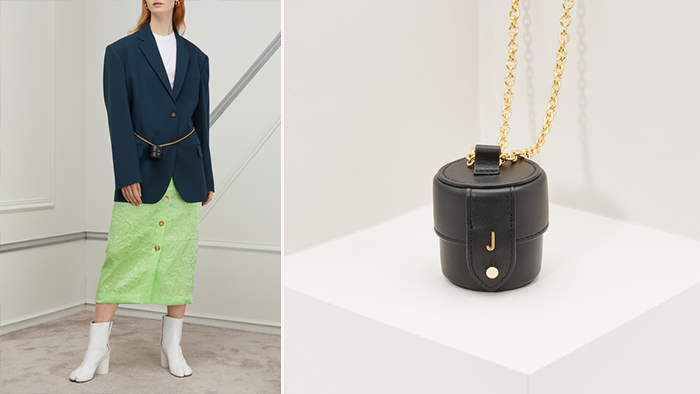 同样来自 Jacquemus 2019 年春夏的圆筒包超可爱!不管手提或当项链都好好看!虽然一样装不进口红,但我还是很愿意买单怎么办?