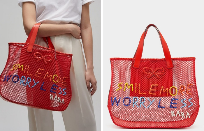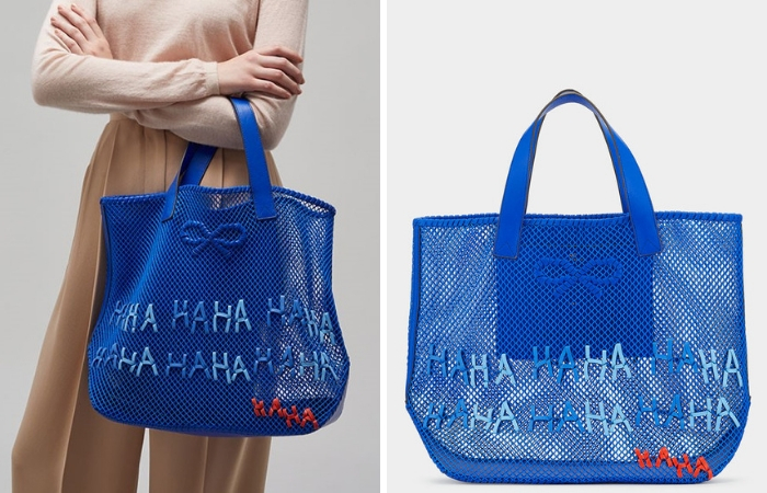 蓝色的Woven Tote包直接编织上Haha的字眼,饶富童趣,打造出轻松开心的氛围。