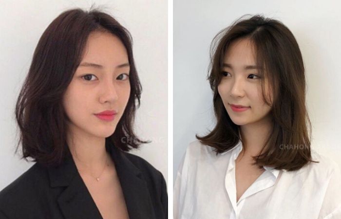 这种发型不管是想要塑造外C、内C弯度或是微波浪卷都相当时髦好看,显脸小之外还格外展现温柔气质。这种中长发的长度,可是发型师们公认最好做造型的发型呢!
