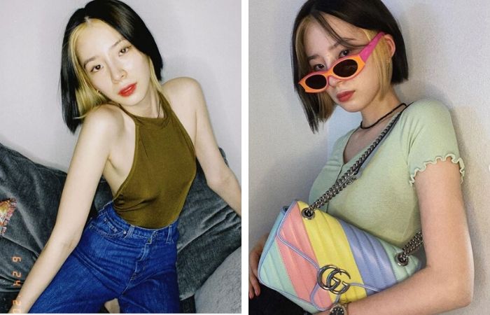 再来也发现到韩国时尚KOL Irene Kim也跟上这波「浏海挑染」,她挑染的范围比较小,但却能达到修饰脸型的效果,让她整个气质更型格。