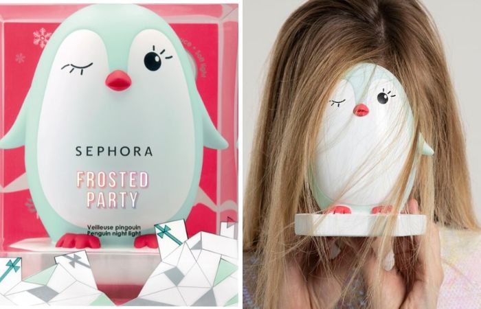 Sephora今年的圣诞主题是Frosted Party,这场冰雪派对最适合的主角自然是企鹅(Sephora Frosted Party Penguin Night Light),既能代表冬天的温暖,也能充分施展Q萌的特色。圆鼓鼓的企鹅像一颗蛋,淡绿色的造型清新可爱,再来个眨眼的表情,摆在房间里完全就是少女心复活剂。