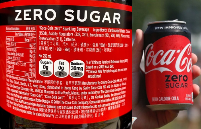以为可乐前面加上了 Zero Sugar 就代表无糖,即使瘦身减肥期间都可以安心饮用吗?No!所谓的 Zero Sugar 和普通可乐的分别在于把普通可乐中的“蔗糖”换成了人工合成甜味剂,它可以让味蕾尝到糖的甜味不增加热量,而且合成甜味剂虽然无法被人体吸收,但会轻易造成肠道细菌的食物,导致肠道内代谢细菌失衡,影响内分泌代谢,减慢新陈代谢的功能等等。