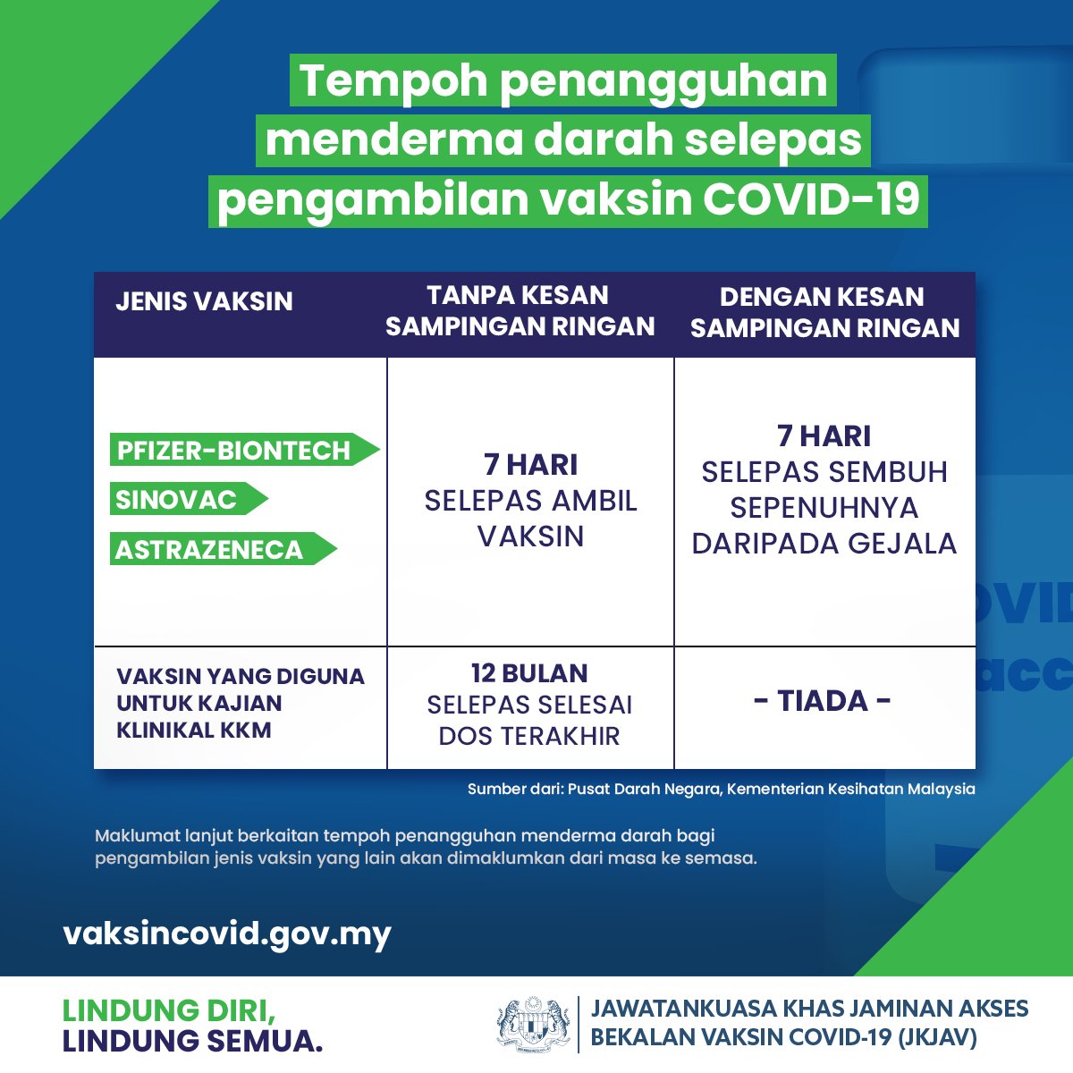 对于本身有定期捐血,无论是完成了接种疫苗或即将接种疫苗要特别注意啦!