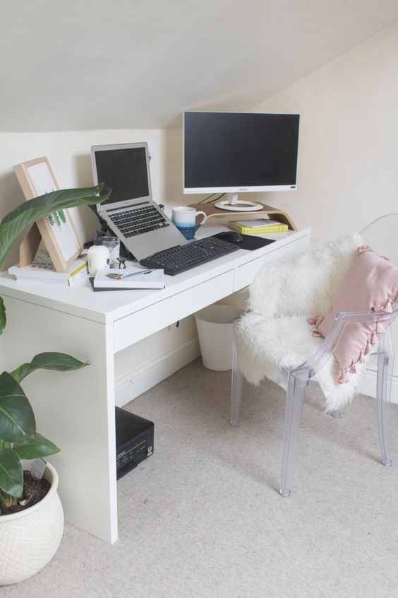 电脑屏幕位置不能太近,最好是一个手伸直的距离,且屏幕的可视高度最好在平视或者是稍微低一点为佳。也可以在办公的桌上放上绿色植物,提升居家办公环境,同时舒缓眼部压力。