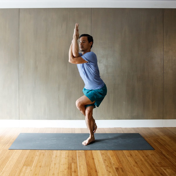 这是一个很好的理疗姿势,打开肩膀臀部同时能激活消化系统并且帮助肾脏和前列腺。这个姿势需要很好的平衡,如果没办法平衡的话可以坐在椅子上慢慢适应。如果平衡感很好的话,只需像隐形椅子姿势那样,将肘部和膝盖对齐并向后移动臀部即可。
