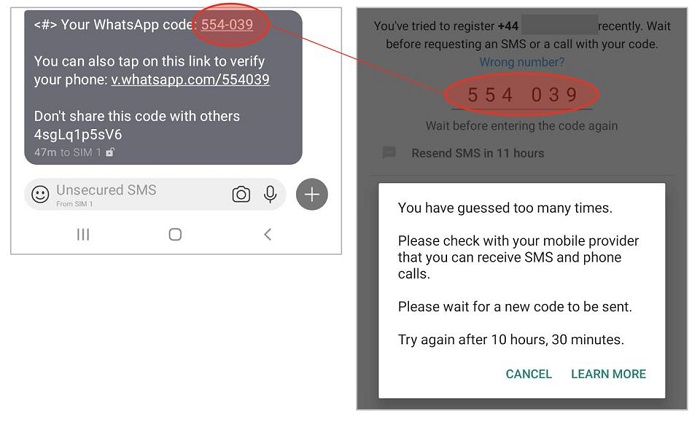 ⭕ 在多个12小时后Whatsapp最终会出现bug ,令用户永久无法再收到验证短讯,即使有设置双重验证,亦无法阻止这项攻击。