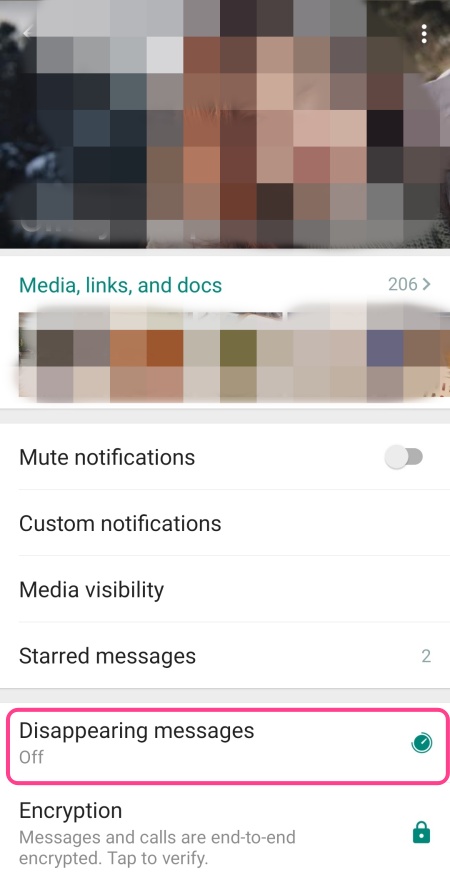 你已开启“Disappearing Messages”限时讯息功能?如果还没有,可以这样做。
