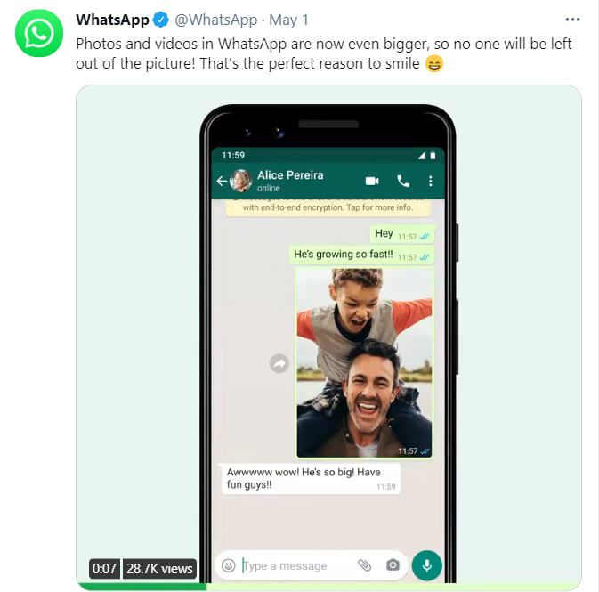WhatsApp在官方Twitter上发文: