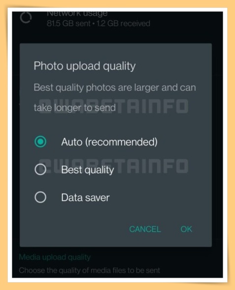之前,WhatsApp 传出即将推出“高清影片”或“压缩画质影片”的新功能,现在又有来自外媒的消息指出,WhatsApp将推出“自选照片质量”功能,这也意味着用户可以发送高清照片。