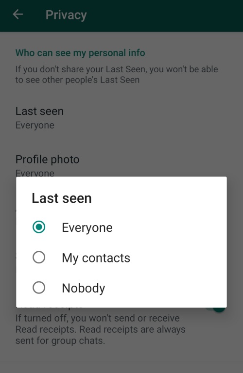 在Privacy的Last Seen那里选择NoBody即可。