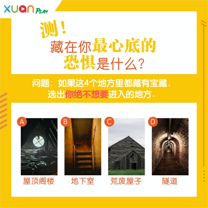 每个人的内心都会藏有一些恐惧,可能很多人不选择正视它,但其实这些恐惧都会影响着我们,如果我们无法跨越这个恐惧,可能会影响着我们以后的决定和生活。来测测看一直让你深埋心底的恐惧是什么吧!