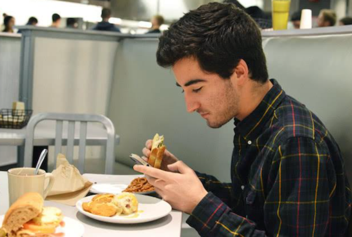 吃饭的时候要到餐桌去用餐,也不要带着电脑、手机边看,不专心吃饭不但无法好好享用餐点,也会降低对饱足感的敏感度,一不小心就会吃过量,或没有专心咀嚼导致吞咽太快。