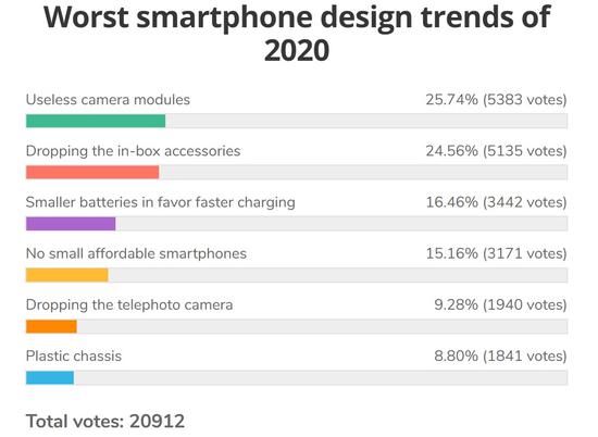 每次当获知喜欢的手机厂商将推出新手机时,都会很期待新手机的新功能,不过并非每一个新功能都获得消费者的青睐!外媒对此进行了投票,结果“2020年最糟糕手机设计”是凑数镜头、取消充电器等等!
