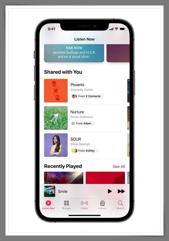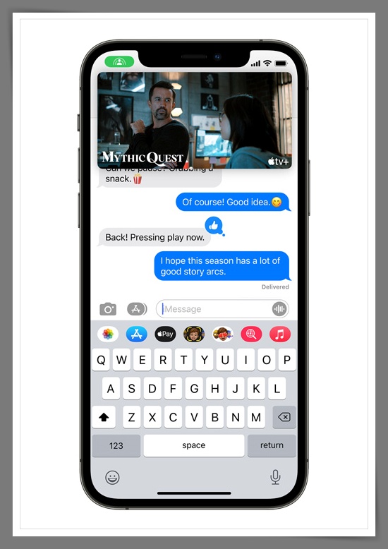 此外,FaceTime将支持Share Play功能,这意味着双方通话时只需打开Apple Music播放,对方也将自动唤醒Apple Music并同步进度;而且也支持分享视频,将两人同时观看同一视频和共同进度。目前已支援 Disney+、Hulu、HBO Max、TikTok、NBA、Twitch 等平台。