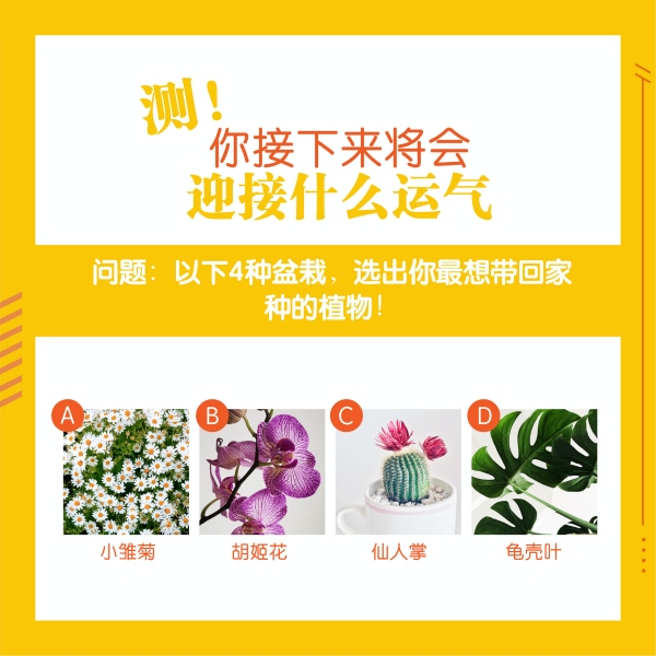 我们一生中也不可能一直都是顺遂,有倒霉也有运势好的时候,想知道接下来的日子会迎来什么运气吗?以下有4种不同种类的植物,你第一眼最想要把哪一盆带回家好好种植呢?
