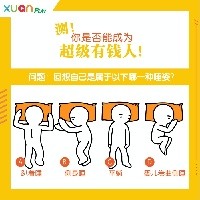 睡眠时刻是大部分人最放松的时候,所以睡觉的姿势都是他们的潜意识,所以想知道自己未来能否变成超级有钱人,先所以来测看看,你到底把自己「睡」成什么样的人吧!