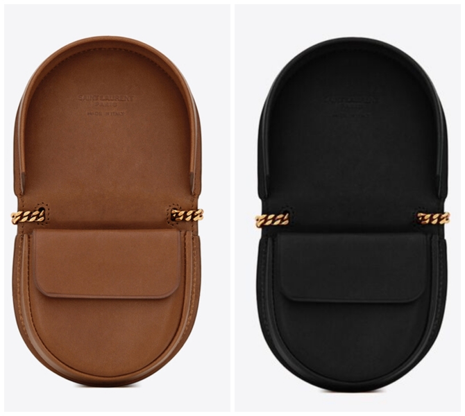 这款在小皮件区的Le K Baby Satchel 外形轮廓是Kaia Bag的马鞍包,加上经典的YSL金属logo,在小包里面有夹层设计,可以放进零钱和小唇膏和现金。搭配金属链带,日常轻松出门一趟其实也很够用了,只是手机就真的无法「容纳」了,谁叫它可爱就赢了。目前在YSL官网已经能够入手,目前有黑和棕色选择。官网显示价格在950新币(约RM2900左右)。