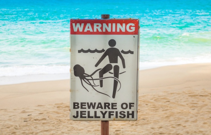 对水母没有太多认知的人,会以为水母很梦幻,是柔软的海洋生物,殊不知它是全世界游泳者的噩梦,因为就算只是轻轻被水母拂过,都会感觉像是被轻微电击,或是被蜜蜂叮咬,如果严重的话,还会让你感觉瞬间麻痹甚至更糟。而且不少人只是在海边踏着沙滩散步,也有不小心被水母蛰伤的经验,所以如果到海边旅行时,最好留意有没有水母警示牌,下水浮潜的时候也要全副武装,看见水母也要远离。