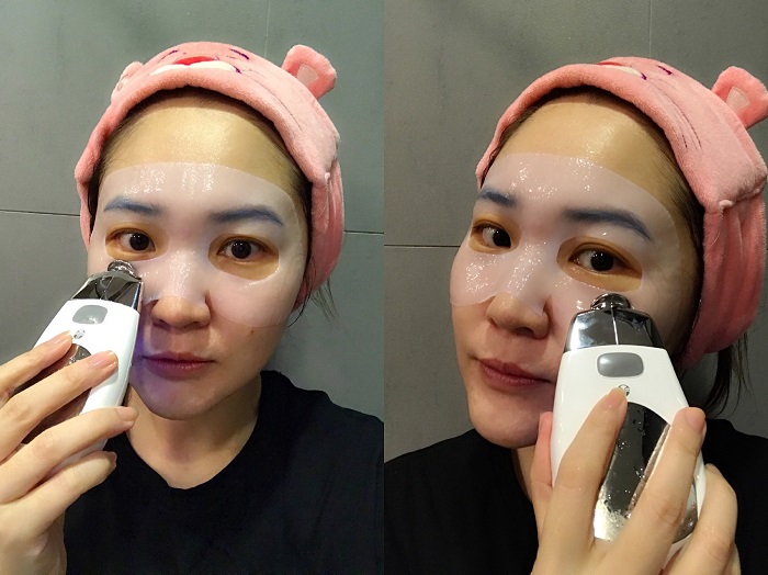 5分钟机器结束之后,再让眼膜在脸上静待多15分钟,完成再用指肚轻按眼周范围促进吸收即可。